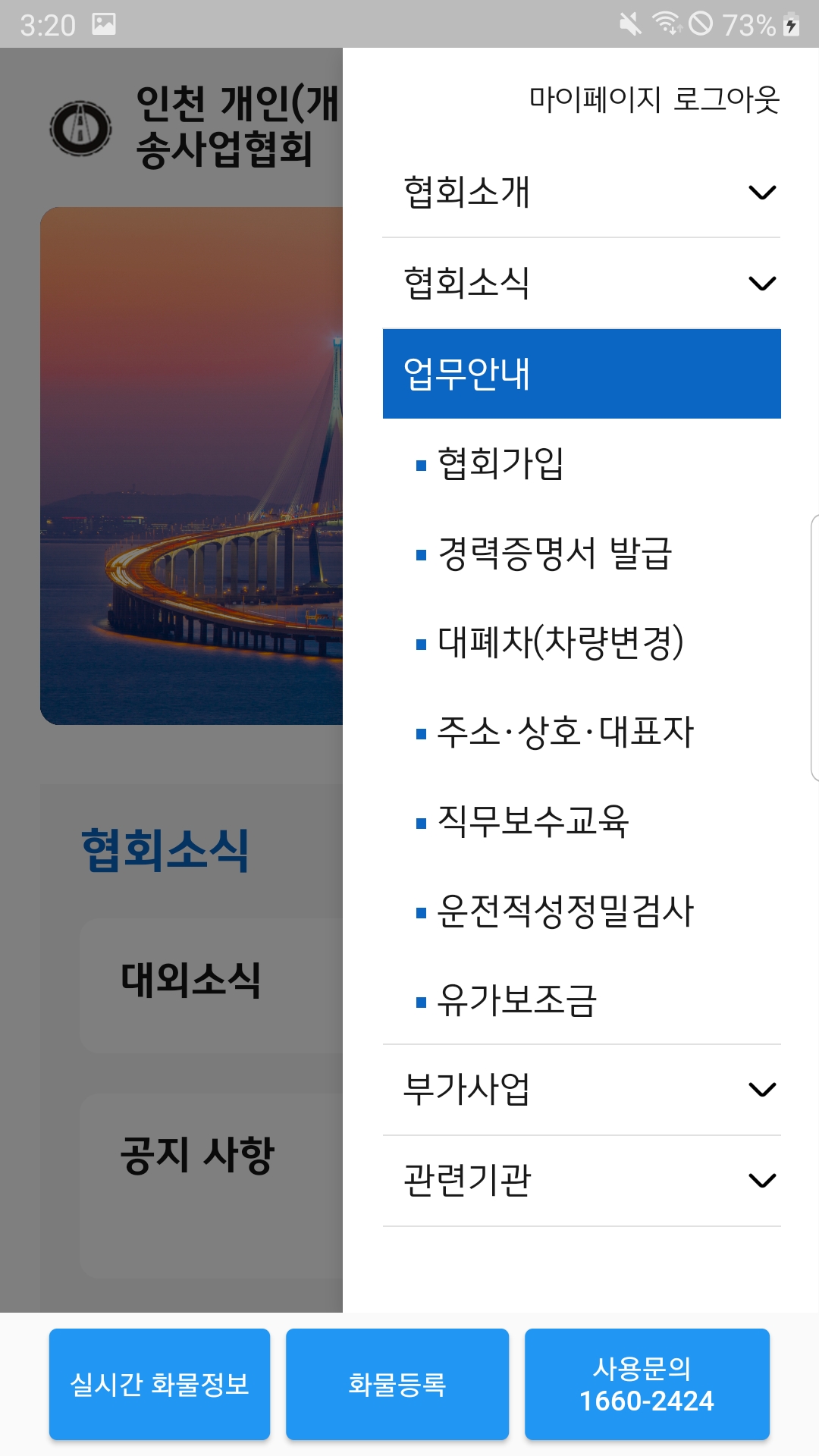 제1조(목적) 이 약관은 인천 개인(개별) 화물자동차운송사업협회(이하 “협회”)가 제공하는 인천 개인(개별) 화물자동차운송사업협회와 인천 개인(개별) 화물자동차운송사업협회관련 제반 서비스 이용과 관련하여 협회와 회원과의 권리․의무 및 책임사항을 규정함을 목적으로 합니다.